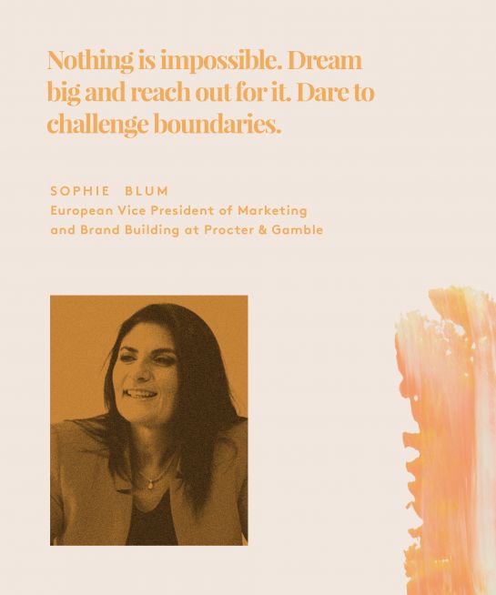 Trabalhando como executiva da Procter & Gamble nos últimos 26 anos, Sophie Blum é apaixonada pela inovação e construção de um futuro melhor através da educação das futuras gerações. Constantemente rompendo fronteiras, ela foi nomeada uma das 100 maiores pessoas mais influentes na Suíça em 2017 e um dos Top 50 líderes de negócios mais influentes em Israel nos últimos seis anos.
