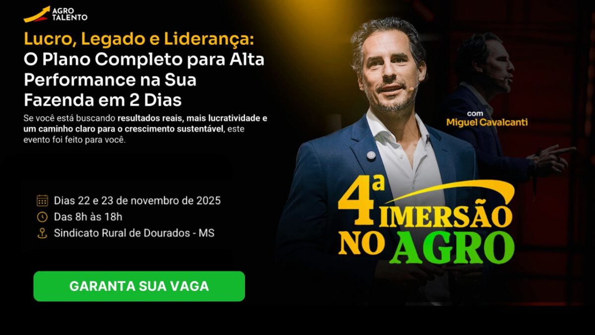 A imersão será conduzida por Miguel Cavalcanti, CEO do BeefPoint e fundador do AgroTalento, com mais de 24 anos de experiência no agro e mais de 2.060 produtores mentorados no Brasil e no exterior. Reconhecido por unir visão estratégica, inovação e tradição familiar. Miguel tem como missão ajudar produtores a atingirem alta performance e a construírem um legado duradouro.