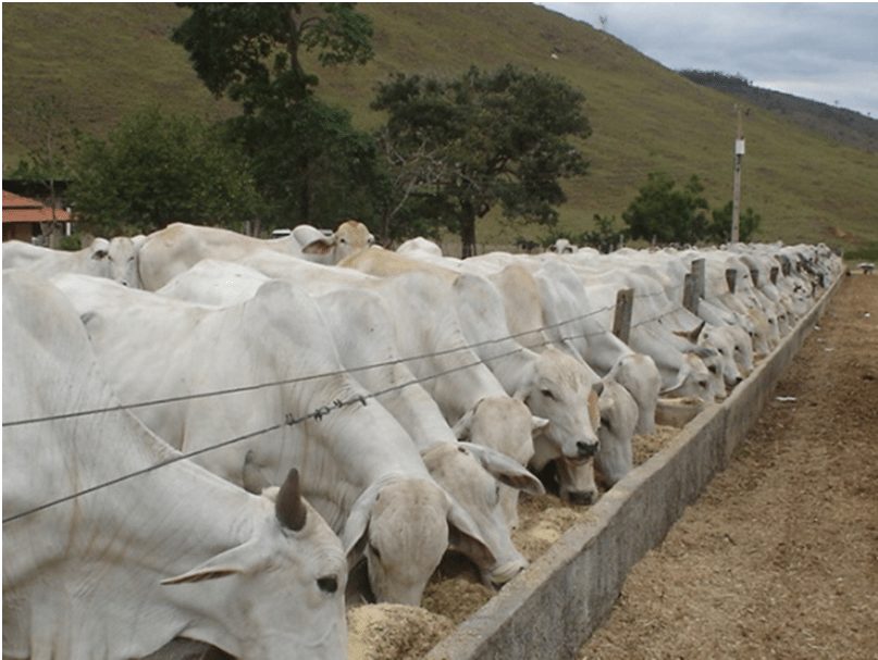 Figura 1: Animais em confinamento no município de Carlos Chagas – MG, recebendo dieta à base de cana-de-açúcar e concentrado.