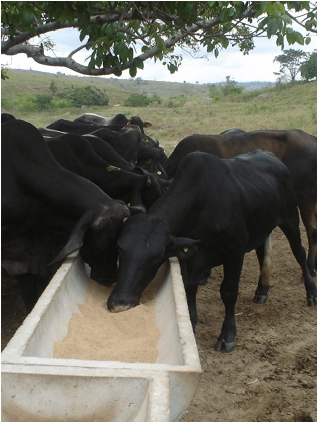 Figura 2: Animais em sistema de pastejo suplementados com proteinado, de modo a fornecer nutrientes para maior crescimento microbiano no rúmen, consequentemente maior digestibilidade e consumo.