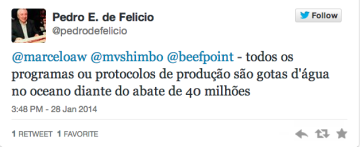 Pedro de Felício complementa: “todos os programas ou protocolos de produção são gotas d’água no oceano diante do abate de 40 milhões!”