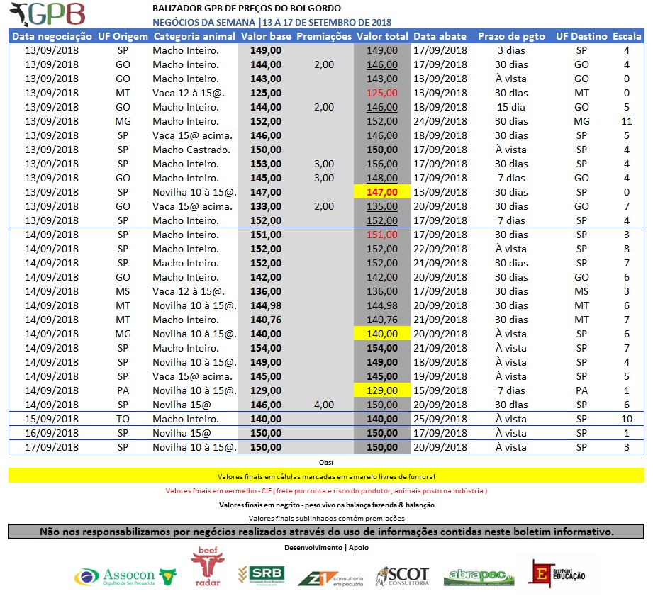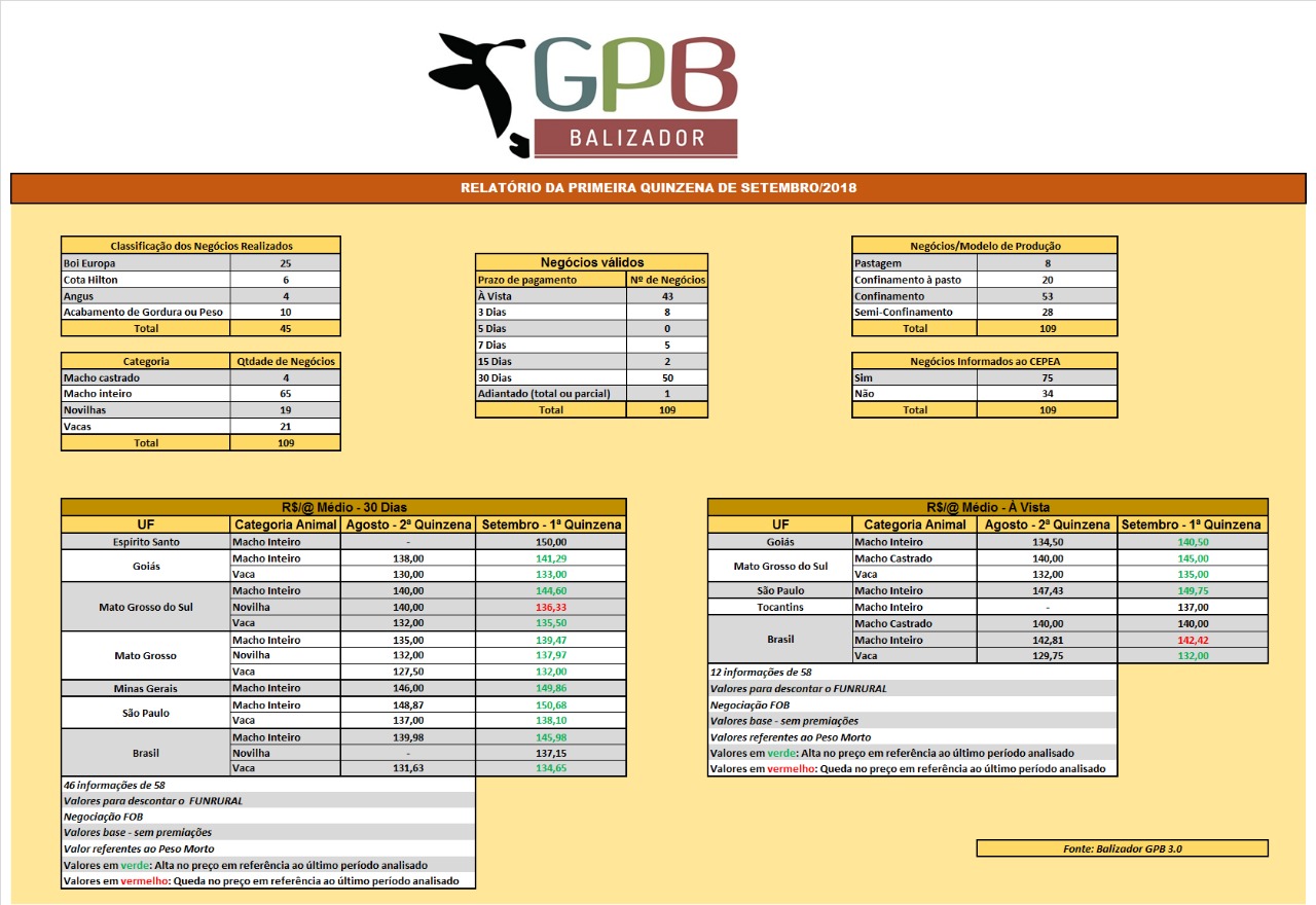 Balizador de Preços do Boi Gordo GPB – Boletim de 18-setembro-2018
