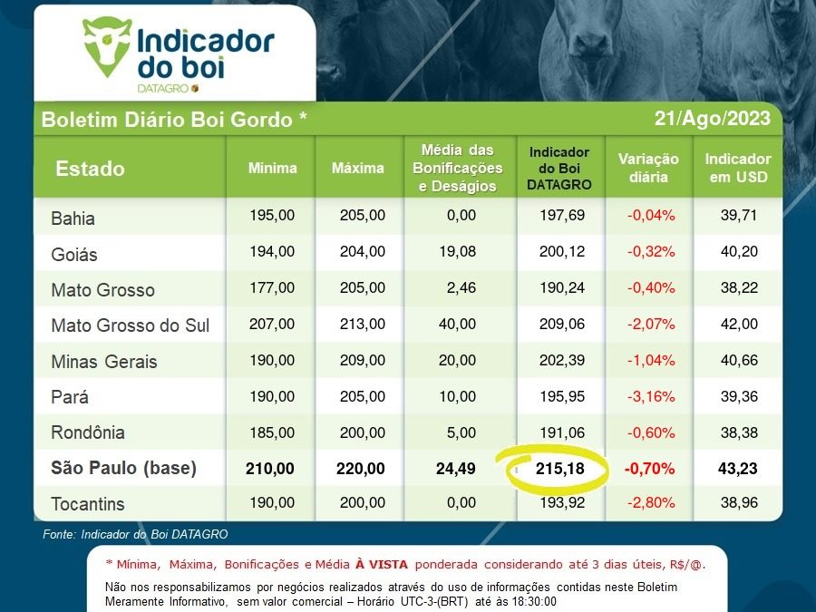 Balizador de preços do boi gordo GPB/DATAGRO – Boletim de 21-agosto-2023