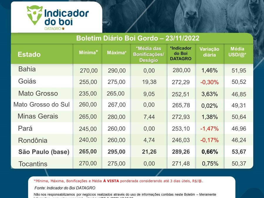 Balizador de preços do boi gordo GPB/DATAGRO – Boletim de 23-Novembro-2022