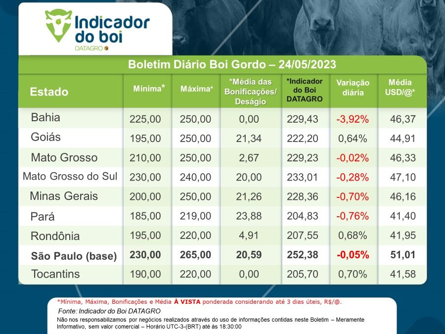 Balizador de preços do boi gordo GPB/DATAGRO – Boletim de 24-maio-2023