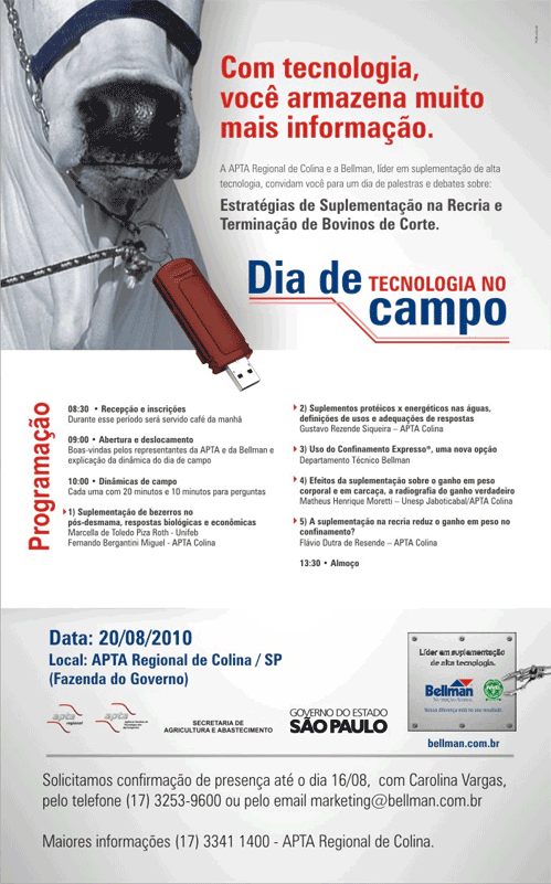 Bellman: Dia de Tecnologia no Campo acontece dia 20 de agosto