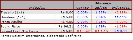 Tabela 2. Fechamento do mercado futuro em 04/02/11