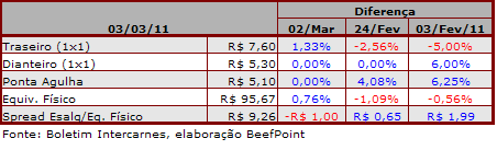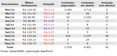 Tabela 2. Fechamento do mercado futuro em 03/03/11