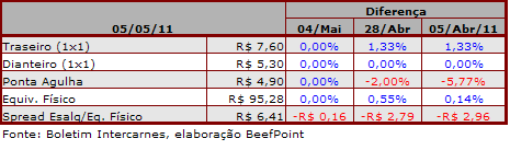 Tabela 2. Fechamento do mercado futuro em 05/05/11