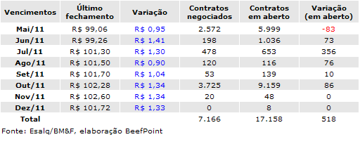 Tabela 2. Fechamento do mercado futuro em 19/05/11