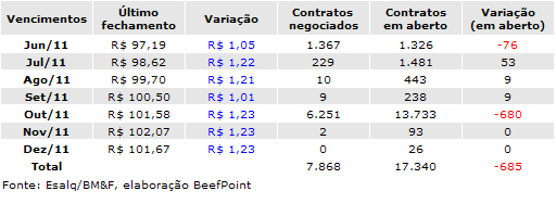 Tabela 2. Fechamento do mercado futuro em 21/06/11