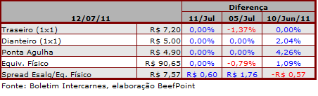 Tabela 2. Fechamento do mercado futuro em 12/07/11