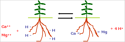 Figura 1. Representação esquemática da troca iônica existente entre as raízes das plantas e a solução do solo no momento da absorção de nutrientes