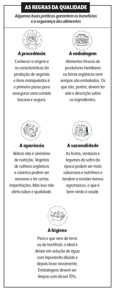 Para tirar o máximo proveito dessa tendência, e evitar qualquer risco, algumas recomendações seguem de pé: checar o estado do produto adquirido e as condições da embalagem, lavar bem antes de usar e, no caso dos orgânicos, verificar certificações como o selo Produto Orgânico Brasil, atribuído pelo Ministério da Agricultura, Pecuária e Abastecimento e pelo Inmetro.