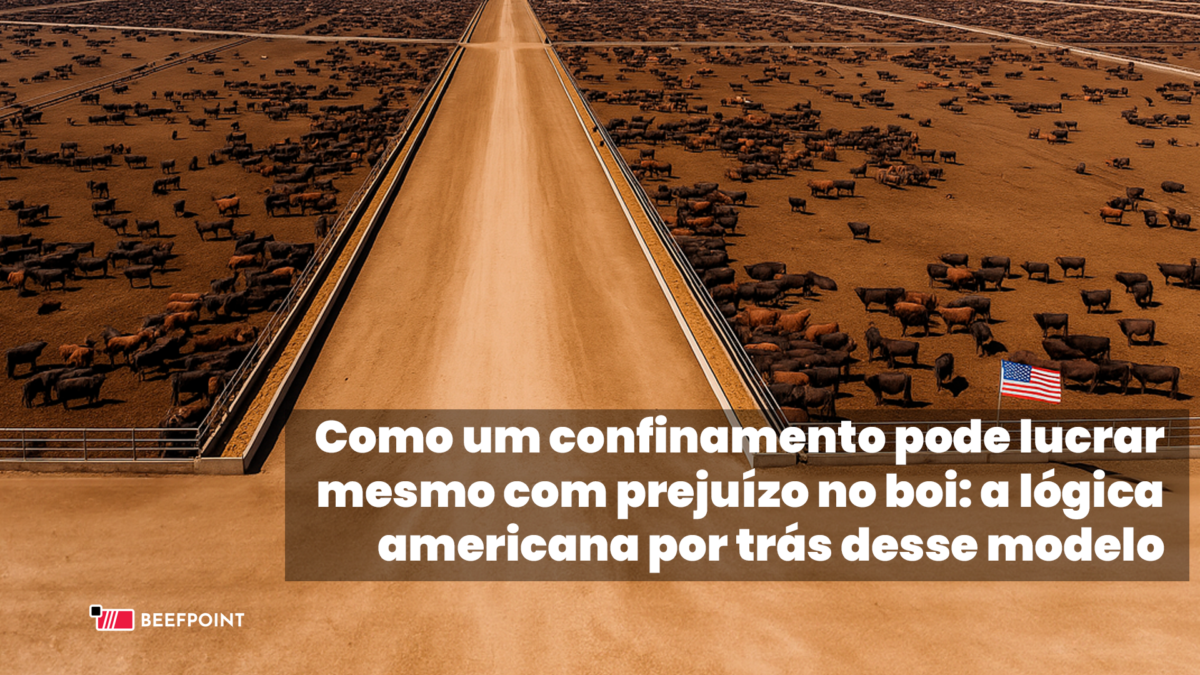 À primeira vista, a ideia parece absurda. Se o boi dá prejuízo, o confinamento deveria perder dinheiro. No Brasil, essa relação é praticamente automática. Nos Estados Unidos, porém, a lógica é diferente — e é exatamente por isso que muitos confinamentos continuam operando com lucro mesmo quando a planilha do boi está negativa.