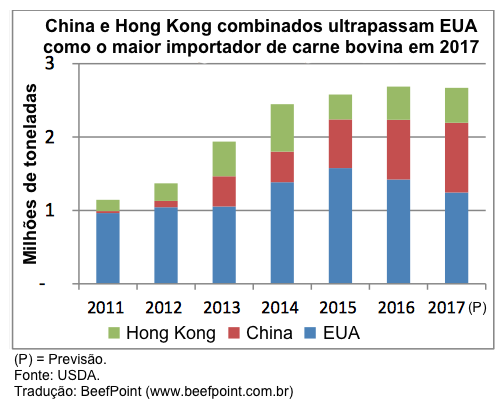 As exportações mundiais em 2017 deverão aumentar em 2%, para 9,6 milhões de toneladas. As exportações da América do Sul, da Índia e dos Estados Unidos vão mais do que compensar as quedas nas vendas da Austrália e da Nova Zelândia, ambas prejudicadas por menores ofertas. O consumo crescente no Leste da Ásia, em particular na China, irá impulsionar as exportações. No entanto, a demanda de outros importadores importantes cairá em 2017, incluindo o Egito (desvalorização da moeda) e a Rússia (poder de compra limitado e concorrência de outras carnes). A demanda de carne bovina no Oriente Médio e no Norte da África permanece estável, uma vez que os baixos preços do petróleo continuam impedindo o crescimento econômico.