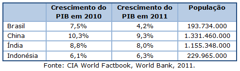 Tabela 2: Taxas de crescimento econômico, regiões selecionadas, 2010 vs. 2011