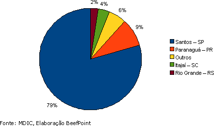 A exportação de carne bovina in natura predominantemente é realizada via marítima e representa 99,2% no volume total das exportações, já a via rodoviária e aérea representam, 0,7% e 0,1% respectivamente. Por isso as exportações marítimas merecem tanto destaque. O porto de Santos que é principal porto brasileiro foi o responsável por 80% da exportações (709.762 toneladas) de carne in natura em 2009.