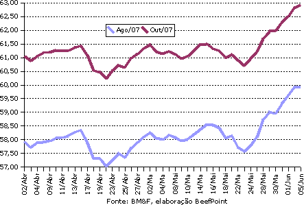 Gráfico 3. Contratos futuros para agosto e outubro/07