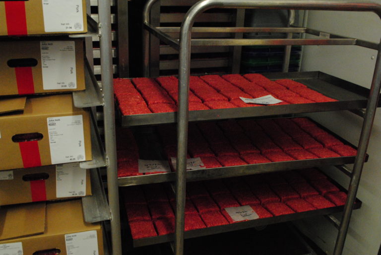 “Todos os nossos açougues obtêm a mesma carne natural, sem hormônios e sem antibióticos de Angus”, disse a gerente de marketing sênior da Shake Shack, Laura Enoch. Quando questionada sobre detalhes mais específicos, ela listou uma série de fornecedores domésticos de alta reputação, como Creekstone Farms, do Kansas, mas parou por aí. “Acreditamos que nossa base de fornecedores é secreta e isso nos dá uma vantagem competitiva”.