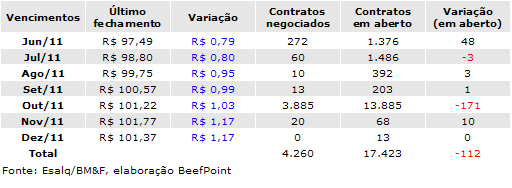 Tabela 2. Fechamento do mercado futuro em 15/06/11