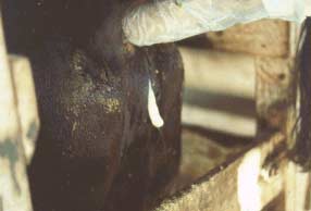 Figura 1. Corrimento anormal em uma vaca observado pelo vaginoscópio.