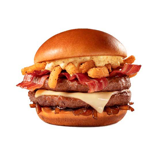 Para o sanduíche foram escolhidos pão tipo brioche, dois hambúrgueres, queijo Ementhal, molho Honey Mustard, cebola empanada frita, cebola caramelizada, bacon e geleia de bacon – arrematado a um final levemente defumado.
