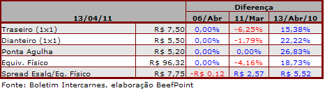 Tabela 2. Atacado da carne bovina