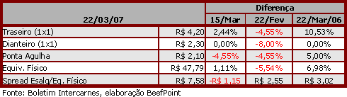 Gráfico 1. Indicador Esalq/BM&F x contratos futuros março/07