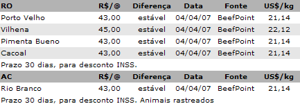 Um cordial abraço, Equipe BeefPoint (cotacoes@beefpoint.com.br ou 19-3432-2199).
