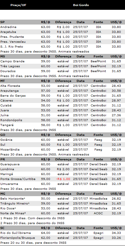 Mercado Físico do Boi – 25/07/07