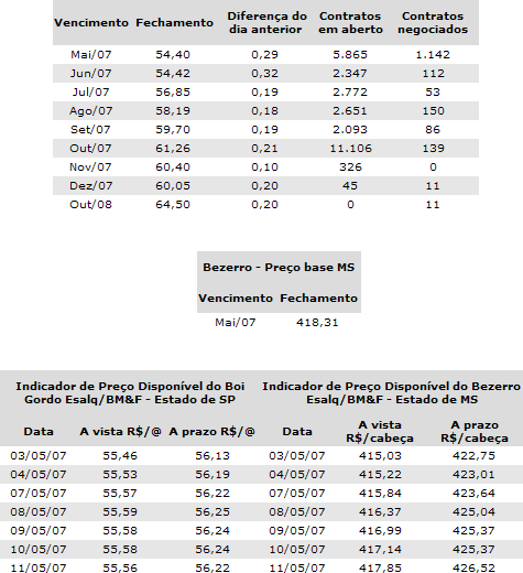 Movimentações da Bolsa de Mercados Futuros, informações Esalq/BM&F, elaboração BeefPoint.