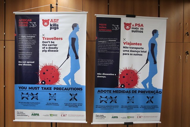 O Ministério da Agricultura, Pecuária e Abastecimento intensificou a vigilância contra a peste suína africana (PSA) com a distribuição de material informativo sobre a doença. O objetivo é evitar que o vírus entre no país e afete a agropecuária brasileira. No Brasil, a PSA foi erradicada em 5 de dezembro de 1984 e o país foi declarado área livre da doença.