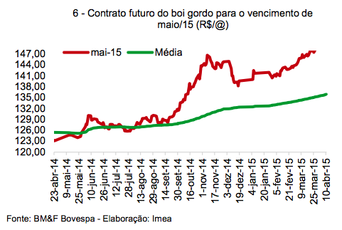 Machos no abate: Segundo dados do Indea, o abate total de bovinos em mar/15 foi de 375,66 mil cabeças, valor 8,33% maior em relação a fev/15. O abate de fêmeas registrou aumento mensal de apenas 2,5%, enquanto o abate de bovinos machos cresceu 15,0% no mesmo período, somando 184,57 mil machos abatidos.