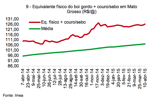 9 – Consideram-se para o cálculo equivalente físico do boi gordo + couro/sebo os pesos dos cortes cárneos com osso e o peso do couro e sebo obtido no abate de um bovino.