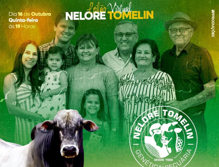 No próximo 16 de outubro, às 19h (horário de MT), acontece o Leilão Virtual Nelore Tomelin, transmitido ao vivo pelo AgroCanal (Sky 154/554) e também pelo aplicativo da Ricardo Nicolau Leilões.
