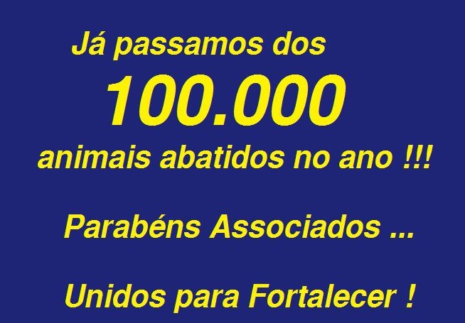 Alexandre Raffi (@AleSRaffi), Presidente da Associação Novilho Precoce do MS, divulgou em sua página no Facebook a marca de 100 mil animais abatidos pelo programa de qualidade da associação, atingindo a meta de 2012 antecipadamente.