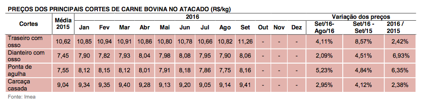 – O abate de fêmeas caiu 15,73% na comparação entre agosto/16 e julho/16, foram abatidas 145,45 mil fêmeas no último mês.