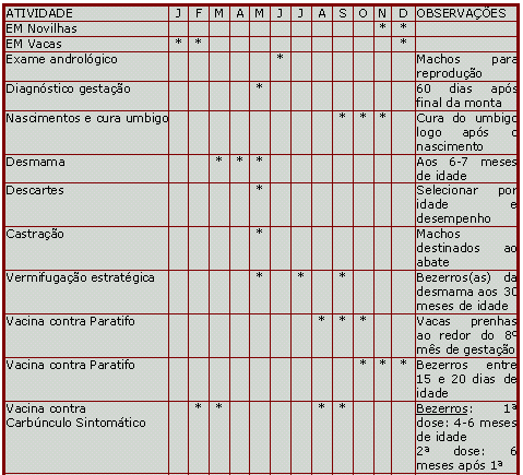 Tabela 2. Cronograma mensal das principais atividades de manejo, para o período de monta de três meses.