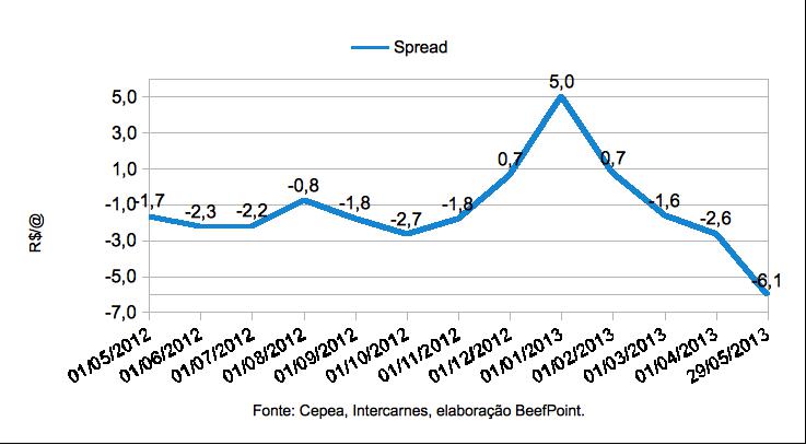 – Quanto maior o Spread, maior é a margem bruta do frigorífico.