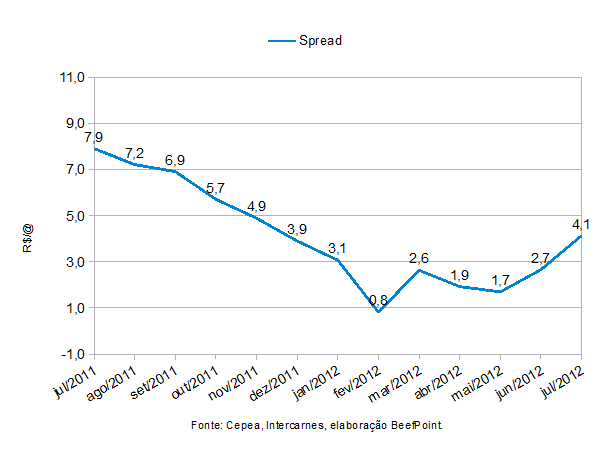 Gráfico 4. Spread Indicador Esalq/BM&FBovespa boi gordo à vista x equivalente físico