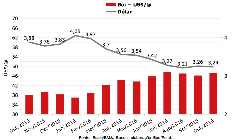 | Fonte: Esalq/BM&F, Bacen, elaboração BeefPoint | ||||
