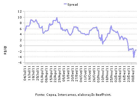 Gráfico 4. Spread Indicador Esalq/BM&FBovespa boi gordo à vista x equivalente físico