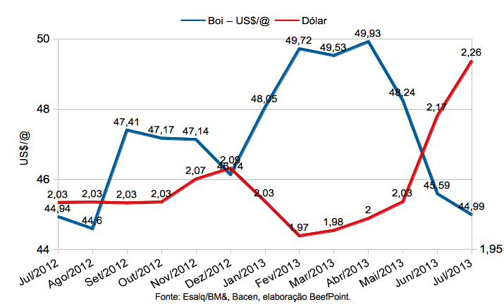 O contrato futuro do boi gordo para Ago/13 teve valorização de R$0,10 e foi negociado a R$102,59.