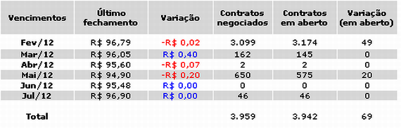 Tabela 2. Fechamento do mercado futuro em 07/02/12