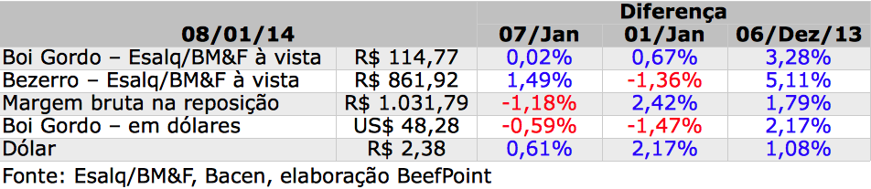 A partir de 2/jan/12 o Indicador do boi gordo ESALQ/BM&FBovespa deixou de considerar o Funrural.