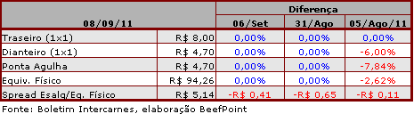 Tabela 2. Fechamento do mercado futuro em 08/09/11