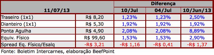 O contrato futuro do boi gordo para Ago/13 teve valorização de R$0,37 e foi negociado a R$103,88.
