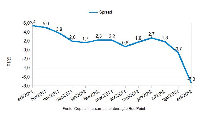 Gráfico 4. Spread Indicador Esalq/BM&FBovespa boi gordo à vista x equivalente físico