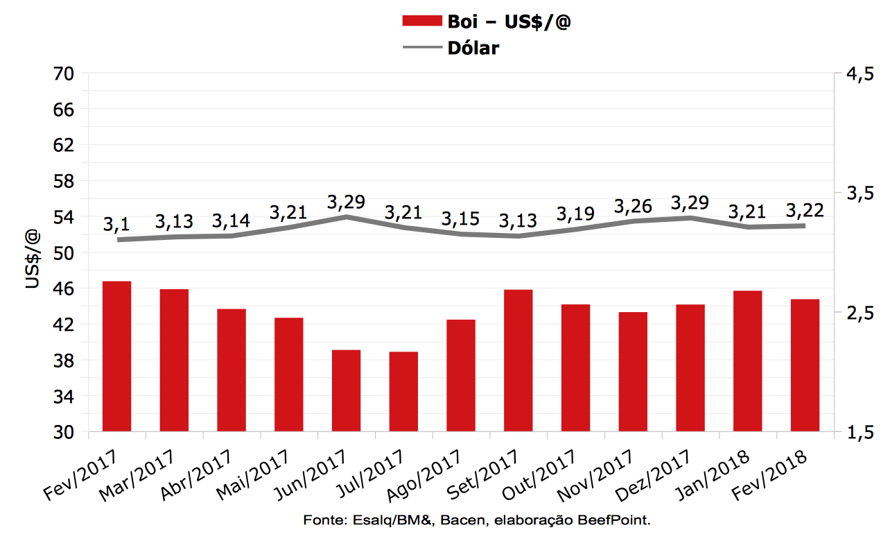 | Fonte: Esalq/BM&F, Bacen, elaboração BeefPoint | ||||